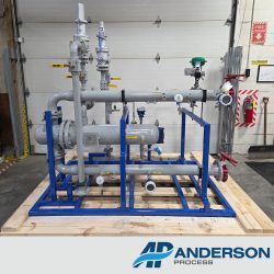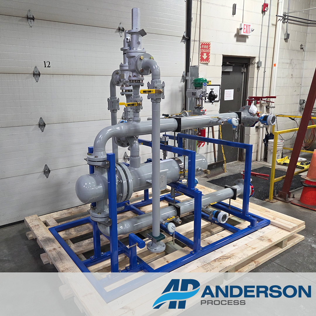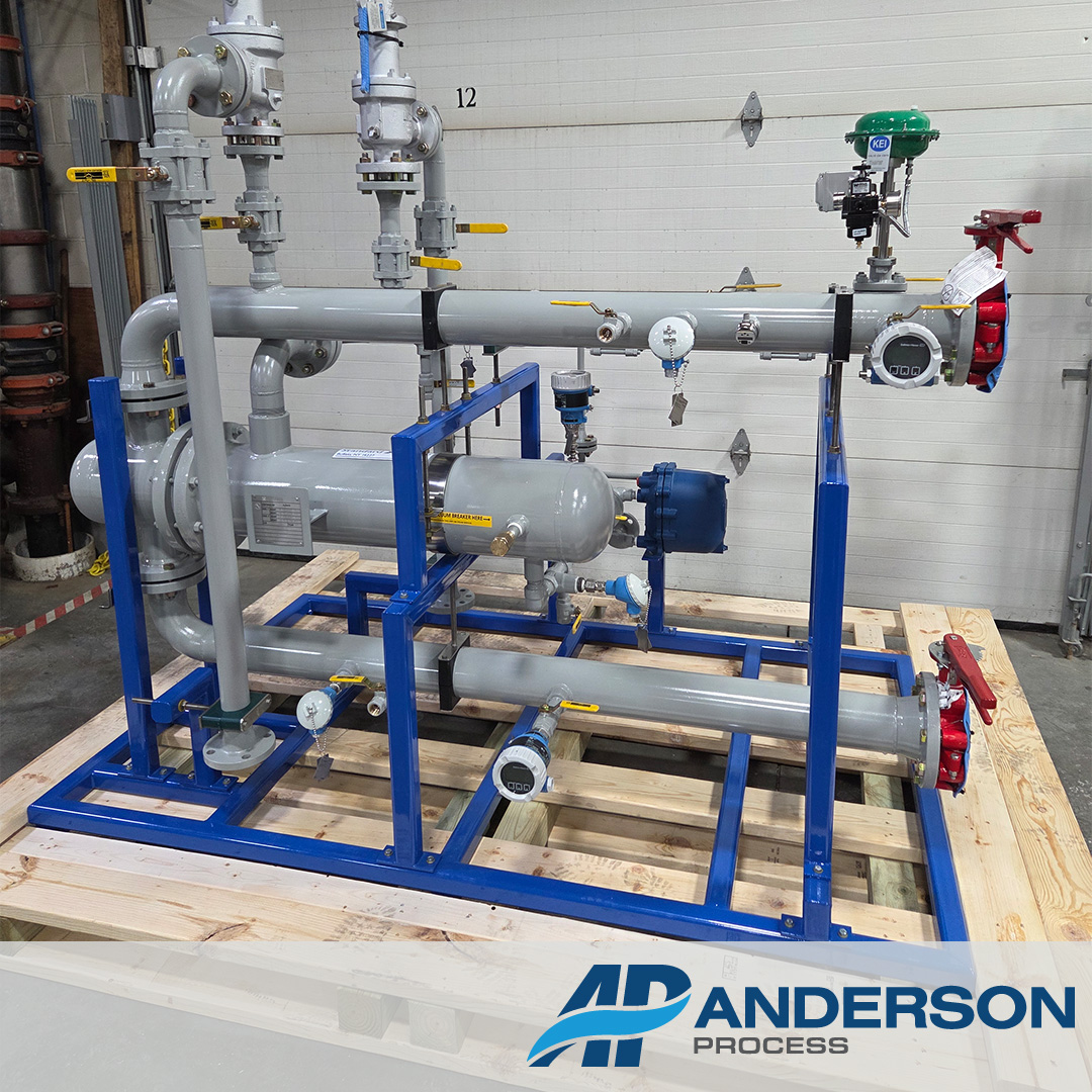 Our team recently built a custom heating skid designed to heat glycol using steam for an application inside a battery plant. This system was engineered for reliable performance in a mission‑critical environment where temperature control is essential.